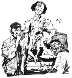 谁知第一顿饭她就没煮好,把饭烧煳了。没人说她什么,她却伤心地哭了一场。她说她在家里煮的都是苞谷饭,煮米饭还是头一回,水掺少了,煮干了。我说不要紧。她说,白生生的米,好可惜哟。我和几个同事故意争煳锅巴吃,故意嚼得咔嚓咔嚓,说煳锅巴是化食的,帮助消化,比吃药还管用。小姑娘这才破涕为笑。她很聪明,什么事一说就明白。我说了几个菜,她把它炒出来,大家赞不绝口。
