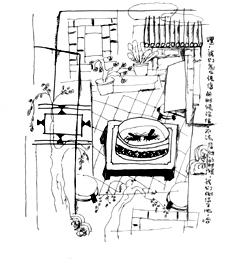 黄叔叔把他们家的小炕桌四平八稳地放在院子中间,再转身回去,像魔术师一样,接二连三捧出了几个大号澄浆底的专业蛐蛐儿罐儿。