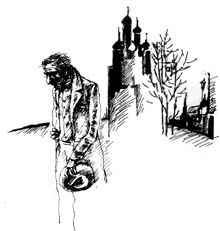 他对自己的身世,除了知道他名字叫鲍里斯之外,几乎毫无所知;而对自己的家乡,他只能极为混乱地描画个大概,他是麦舍尔斯基公爵的农奴(虽然农奴制早已废除了好几十年了,可他还是说农奴这个词),他同他的妻子和三个孩子住在离大湖有50俄里的地方等等。现在谈到下一步该如何办的问题了,一些人开始争论起来,而他目光呆滞地蹲在这群人中间。中午吃饭的时候,饭堂里集聚着一大群人,笑语喧哗,他周围的人都在高谈阔论,在喧嚣嘈杂的人群中间他又聋又哑地坐在这里时,他的双手哆嗦起来,几乎连用勺子舀汤都舀不出来。蓦地,两行粗大的泪水顺颊滚下,沉重地落在桌上。他畏怯地环望一下四周。其他人看到他流泪,一下子就静了下来。他感到羞愧,把沉重、蓬乱的脑袋越来越低地垂向黑色的桌面。