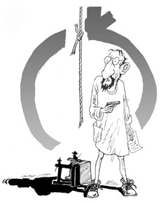 但凡有决心、有毅力的人必须像我那样,要死就非死不可。我从杂货铺里买来了一根很粗的绳子和一块肥皂,在绳子上涂了点肥皂后,我就像进税务局的大门一样把脖子伸进了滑溜溜的圈套。绳子是在天花板上拴好了的,脚底下的凳子也踢翻了,可我的身子没来得及晃荡一下就“啪嗒”一声摔下来了。原来绳子是烂的,这儿连根结实的绳子都买不到。我这才想起了杂货铺老板曾说过:“难道能有结实的东西吗?”