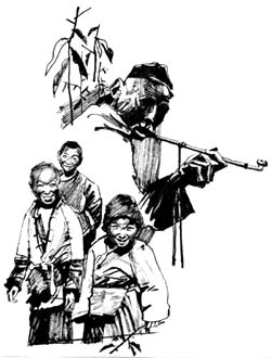 那日,小伙伴们去地里玩,四月的阳光一晒,心更野,都兔子似的跑,一口气跑到村东那条河边,扭头看见靠河一片豌豆地。那地起码种了40亩豌豆,望去,豌豆苗遍地葱绿。高处的豆秧还正开花,花是乳白色,好似绿叶间落了千百只蛾儿。那是白豌豆,如果是黧豌豆,就开紫红色的花。白豌豆豆秧甜,豆荚脆,且没筋,就特别好吃。狗儿爷说:“去呀,尝尝鲜。”像一群牛犊儿,都蹿进地里,掐豆秧尖儿吃,摘豆荚吃,都嚼得两个嘴角流绿水儿。吃够了,还摘,打算回家吃。除了小扣,大家衣服上都没口袋,只能拿在手里。正摘着,狗儿爷说:“小扣,这是你的地,咱摘这么多,你不心疼?”小扣说:“是我家的?那好啊,摘吧,摘两天也摘不完。”他家是财主,地多,他确实不知道哪块地是自家的,还没摘满把,狗儿爷抬头一看,惊恐地说:“不好,小扣他爷爷来了。”都朝地边看,看不见。狗儿爷说:“正往这儿走哩,看那烟袋杆。”小扣他爷爷个儿矮,烟袋杆却比擀面杖还长,平时,从领口插在背后,烟布袋垂在肩上,安了玉石嘴的烟袋杆就高出头半尺。此刻,那使得黑亮的紫竹烟袋杆,和反射着阳光的玉石嘴,果然正一步步移近豌豆地。大家都慌了,手里的豆荚扔掉舍不得,藏也无处藏。只能等着挨骂,甚至挨打。小扣也没办法,憷憷地看着渐渐走近的爷爷。那是个干瘦的小老头,戴渍满了油腻的黑色瓜皮帽。看他的脸色,不像生气,只埋怨道:“娃们啊,豆角还没长饱就摘了,遭罪啊,这东西不能生吃,生吃多了拉稀。”我们都猫着腰走出地,老头儿说:“慢点走,别踩了豆秧。”看我们手都背在身后,笑道:“手伸出来叫我看看。”我们伸出小手,手里都有半把豆荚,小扣手里只有两三个,口袋倒鼓鼓的。他爷爷说:“把你口袋里的都掏出来,分给他们。都记住,拿回家煮了吃,眼下还嫩,皮儿也能吃。”原以为他要把我们摘的豆荚全部收走,却不料还要把小扣的分给大家,真不知道这老头儿心里想的啥。