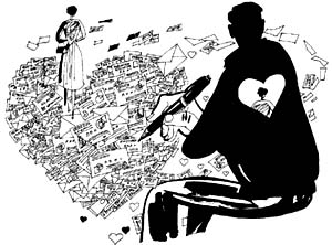 他在被需要的时候挺身而出,在被放弃的时候回家悄悄地写下一封封情书,不敢邮寄,就那么封好了、贴上邮票,叠放在一起,慢慢地积满了几个抽屉。