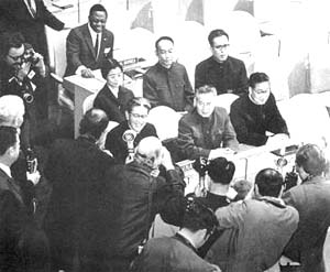 主席说:“那倒不必喽。联合国秘书长不是来了电报吗?我们就派代表团去。”主席指指乔冠华:“让乔老爷当团长,熊向晖当代表,开完会就回来,还要接待尼克松嘛。派谁参加安理会,你们再研究。”