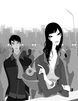 “你帮我挑一个吧!”听了她的话,他满意地点点头,挑起一只灿烂夺目的钻戒。“就这一个吧!”他打开皮夹,抽出信用卡。