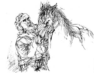 那个时候我总以为在这个世界上只有祖父最懂得马了。马打响鼻,他说它觉得痛快;马轻叫,他说它高兴了;马狂嘶,他说它急眼了;马刨蹄,他说它有急事;马啃槽,他说它饿了;马甩尾,他说它不愿意了。祖父和马在一起,平等而又自由,共同活着,相互伴随着,让人产生些许感怀。