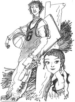 他一手抱住篮球,冲着我笑。我想到他给我的那张字条,有些失神了。他忽然露一个鬼脸:闵琳,你过来,过来。