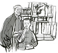 好不容易到了城里,街上来来往往的人晃得我眼花缭乱,仿佛世界上所有的人都集中在这一个地方来了。难怪母亲说城里乱呢,我想。我跟着爷爷,双手死死地拽着他的衣角,这是他叫我这么做的,他怕我走丢。周遭的人群像房屋的土墙将我隔在中间,我的视线只能看到地上来回移动的脚,大的,小的,肥的,瘦的。我的脑子里仍旧想着吃面条的事。我盼望自己能在那会儿瞬间变大,超出所有人的身高,那样,我就可以看到那些面铺究竟藏在什么地方了。