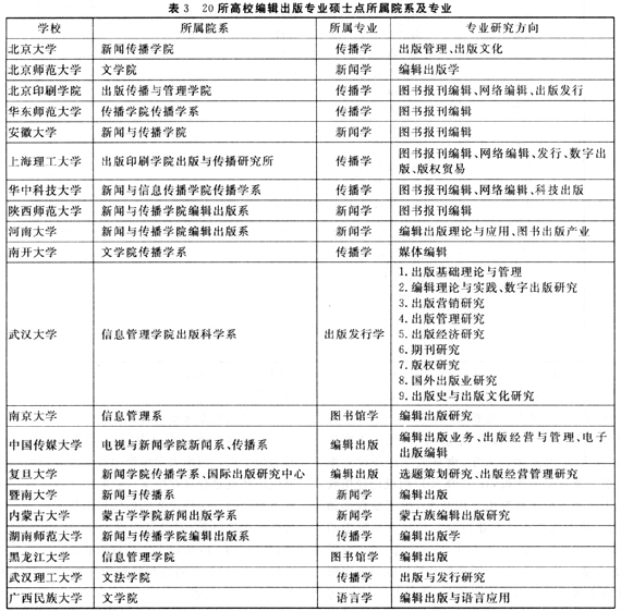 下面以20所招收编辑出版专业研究生的高校为例,进行具体调查,详细分析。