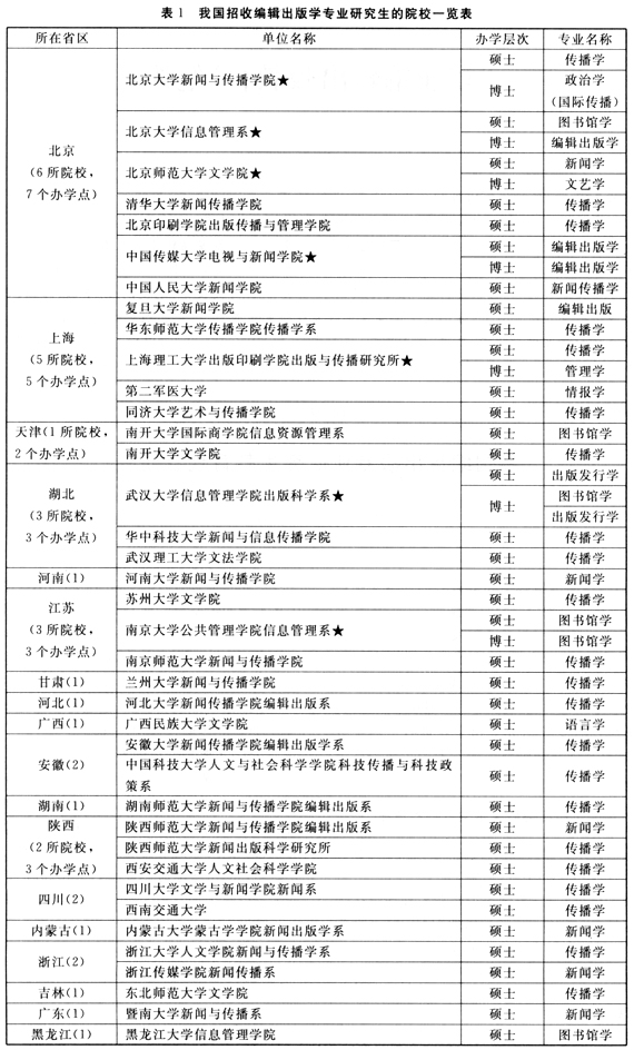 4.带“★”者,为招收编辑出版专业博士研究生院校。
