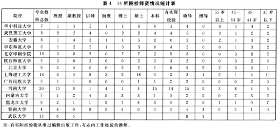 方法:主要是发放问卷,进行调查。其中,北京大学、北京师范大学、北京印刷学院、华东师范大学、复旦大学、上海理工大学、华中科技大学、陕西师范大学、河南大学、黑龙江大学、中国传媒大学是通过问卷调查以及电话采访院系领导获取相关信息的。其他学校的信息是通过查阅其学校和院系的网站、网页获得的。