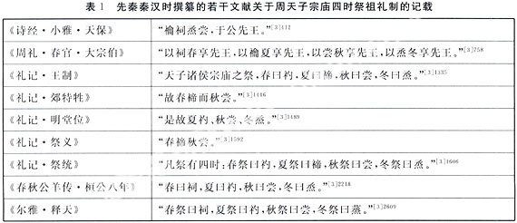 礼记》等大致于先秦秦汉时期撰纂的文献中,关于周代天子宗庙四时祭祭名的记载可谓分歧百出,详见下表1。