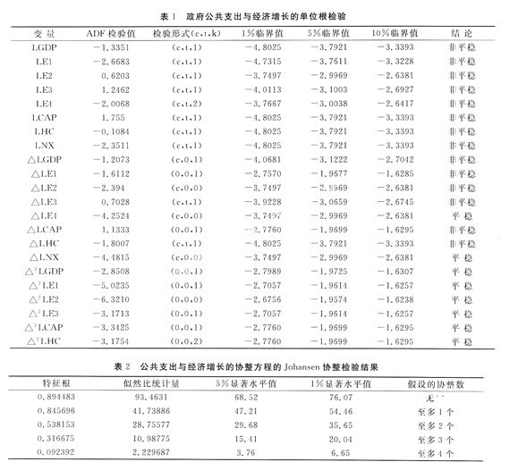 关键词:公共支出;经济增长;向量自回归;协整分析;Granger因果关系