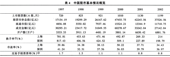 随时下跌的风险中期望获得更多的回报。同时,股票市场的交易手续费却一直处于高位(1%左右),而且中国股市至今还未推出股指期货。然而低的交易成本与指数期货的存在是最有利于降低套利成本而消除泡沫的。与股市不断高速度上涨的情形相对应地是上市公司的整体业绩并未得到改善,基本面也并未发生大的变化,所以中国股市的这段“繁荣”很可能是由于中国股市投资者的自我预期所推动的。上证指数在2001年6月13日达到了最高值2242点以后开始急剧下跌,到2005年底二次突破千点大关时共已下跌了50%多,市值蒸发了近17000亿(若考虑新股发行、配股等因素则更多),投资者损失惨重。