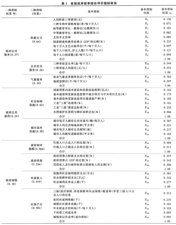 目前对政府绩效的评价研究较多,而对政府效率的评价研究较少。而评价一个国家与一个省、(地)市、县的政府效率的思路类同,但在具体的指标设计方面以及指标权重选取方面有所不同,本文则探讨我国省级政府效率的评价问题。