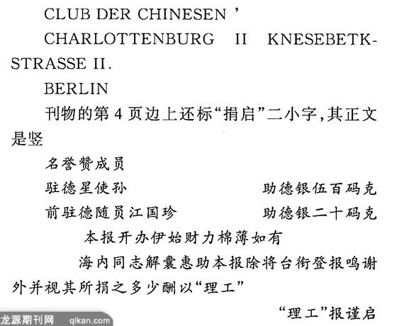 该刊编撰人员有限,大家还是留德(中国学会或称中国club)大学高年级学生,不可能全力投入办刊。于是宾步程等注意广泛发动群众。从上文稿约启事可见,不但利用全德全欧的留学生,还想征求美