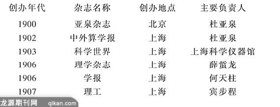 关注出版史的读者可能知道近年国内一项并无争议的研究成果:20世纪中国最早的几种主要科学技术类期刊,其排序如下(仅引至1908年):