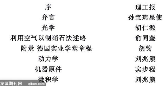 关于刊物文章的知识内容,基本上可以判定是这些留学生学过而且有些心得,感到有用或重要的部分,公诸同好。理科方面属基础知识,来源于人类几千年的积累,特别是科学革命和工业革命中的新成果,不能要求他们(刚从科举制挣脱出来,在德国大学学到专业课程度)提出多少创见。而几篇应用技术如“利用空气制硝石”,第二期马君武的“改良苏达制造法”,都是后来我国实业界(如范旭东的永利公司)的主攻方向,宾步程的“机器原件”和第二期的“办厂规则”,更是从技术和管理两个方面给读者启迪。