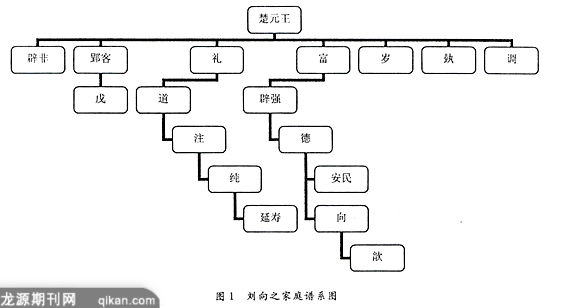诗》于浮邱伯,与申公同师,则向必守家学而为鲁诗学,今即就向之家学作一考论。据《汉书·楚元王传》,向之家族谱系如图1。