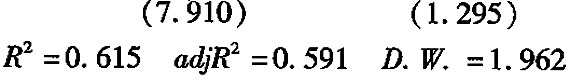 通过对经济增长的规模报酬性质做出进一步规定,经过整理,我们得到最终的修正模型。仍然利用表1的统计数据对式(8)进行实证检验,借助Eviews5.1计量经济学软件得到以下回归结果: