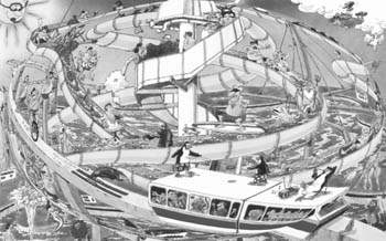 我们玩遍了所有的项目,花的时间自然比预计的多出很多。我们原预定回到市区一家中餐馆吃晚餐,结果改为就在园内的餐饮部吃了;亚城的天气潮湿而闷热,我们不时买饮料喝;园内有许多工艺品店,我们几乎在每家都流连许久……逛了几家之后,每人手上都拎着大包小包。