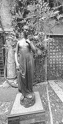 院里的一侧矗立着朱丽叶的铜像,据说这塑像与真人一般大小。打量这尊塑像,不能不让人想起罗密欧在凯普莱特家族阴森的墓室里,面对休克的朱丽叶说出的一句台词:噢,朱丽叶,你为什么还是这么美丽!