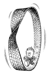 让我们设想一下:一个人的左脚,每一步跨越20英寸长;右脚每一步跨越30英寸长。现在,假设他跨了10步——左右脚各5步。那么,他的左脚将会走100英寸;右脚则行走了150英寸。这听起来似乎是不大可能的。一只脚不可能落后于另一只脚50英寸。那么,究竟是怎么回事呢?那个人的每一步都要朝左偏转一点点。最终,他就转了完整的一个圈。然而,他的足迹却形成了两个圆圈,一个套着另一个。他的左脚的足迹是个小圈,因为左脚的步幅较小;他的右脚的足迹是个大圈,因为右脚的步幅较大。这就是为什么一个人当他出发时直线行走,后来会弧形行走的原因所在。