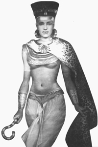 在好莱坞巨片《埃及艳后》中,克丽奥佩特拉同样被描绘成用色相引诱恺撒大帝,助其击溃亲生胞弟而出掌王位;恺撒遇刺后,她又迷倒了安东尼。可是安东尼的作为激起罗马市民的愤怒,在与罗马人交战中彻底败北之后,克丽奥佩特拉眼见大势已去,不得已以毒蛇噬胸自杀,年仅38岁。