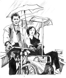 清醒过来的父亲总是觉得对不起母亲,在他精神正常的每个日子里,他会想尽办法去为母亲做些事。有一天晚上,母亲打来一盆热水,坐在小板凳上,开始烫脚。正看电视的父亲忙走过去,蹲在母亲的盆前,给母亲洗脚。两人边洗边说着家常。我清楚地看见,父亲和母亲的眼里都有泪涌出,一颗一颗地滴落在母亲脚下的水盆里。母亲工作的单位离家很远。每天下午,父亲就早早地骑着三轮车去母亲的单位门口等母亲下班。起初母亲不让父亲去。她对父亲说:“那么远,骑三轮车多累呀,还没我骑自行车快呢。”父亲说:“让我去吧,除了这一点点小事,我还能为你做什么?”母亲终于同意了。父亲每天便乐呵呵地骑着三轮车接送母亲上下班。有一次,天很热。我放学回家的路上,看见了父亲和母亲。父亲骑着三轮车,脸上有汗,母亲坐在车里,不停地用手里的蒲扇为父亲扇风,父亲不时地回头对母亲笑……