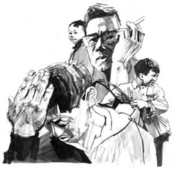 老叔来到城里之后,爸爸就到处奔波为他打听工作。先是介绍他到瓜子厂当工人,老叔抱着铺盖去了,没有一个礼拜就回来了。老叔被开除了,因为有人看见,他半夜起来拿着布袋偷瓜子。爸爸大发雷霆,骂老叔是个无赖,简直是给他丢脸。都是脾气暴躁的人,谁也不懂得谦让,越吵越凶,直到爸爸高声喊:“算我欠你,我一辈子欠你还不行吗?”他们就谁也不再吵了,这句话像紧箍咒,勒紧了他们的痛处。