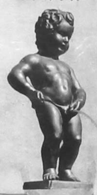 作为布鲁塞尔市的标志性雕塑,“撒尿小孩”建成已经300多年了。关于它的传说很多,最主要的是说,一次敌人夜袭布鲁塞尔,想用炸弹引爆城市。正巧一个叫于连的小男孩发现了燃烧的导火索,他急中生智,用尿浇灭了正在燃烧的导火索,挽救了全城。从此,这座“撒尿小孩”的铜像就成为比利时英雄的象征。在很多人的印象里,“撒尿小孩”一直是赤裸着身子的。其实,它在建成后不久就已经开始穿衣服了。