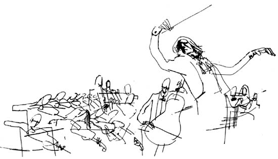演出开始,小施特劳斯潇洒地跳上指挥台,优雅地挥舞着指挥棒,他的拥戴者们大声喝彩,而赫希一伙则怪声怪气地喧叫,但是优雅悦耳的音乐声很快压倒了捣乱者的怪叫声。乐队演奏的曲子是小施特劳斯创作的献给妈妈的一曲颂歌——《母亲的心》。令人心醉的节奏,缠绵起伏的旋律,变幻莫测的音调,加上小施特劳斯充满激情的指挥,使听众先是如痴如醉,继而欣喜若狂,掌声雷动,此起彼伏的欢呼声把赫希一伙的捣乱声淹没在欢腾的海洋中。