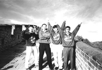 这是浙江人张辉和十几岁就到美国、“中国话都说不利索”的杨晓东第一次登临万里长城,张辉说:“真的有一种几千年文化的震撼,很兴奋!”四个人穿上印有“我登上了长城”字样的纪念衫,在烽火台旁振臂高呼,一张“长城四好汉”的合影后来成为中星微电子公司的“经典”。