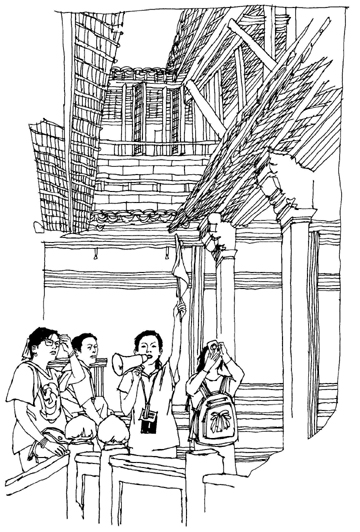 漂亮的导游小姐看出了游客们迷惑的神情,便模仿央视主持人王小丫的口气问道:“下面大家请听题:谁知道这间小屋子是做什么用的?”好奇的游客们不由纷纷回答: