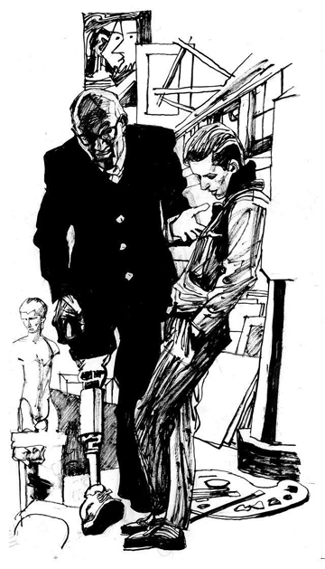 杰克被威尔斯拉到一个小型车间似的地方。门被打开的一刹那,杰克突然怔住了,这里面简直就是个小型美术馆,到处是绘画和雕塑作品,而且都是上乘之作。他呆呆地站在门口好一会儿,直到威尔斯叫了他两三次才应声走进去。