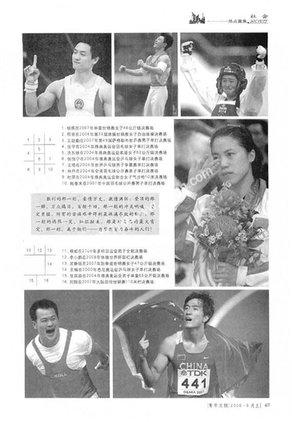 1.杨炼在2007年举重世锦赛女子48公斤级决赛场