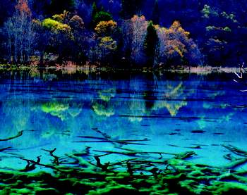 其实九寨沟是不存在死亡的。飘展在海子边上的经幡可以作证,神秘已经把永恒的生命赋予给了这里的一切。