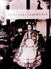 慈禧头戴的凤冠由珍珠宝石镶嵌而成,冠上一颗重4两大如鸡蛋的珍珠,当时价值白银约1000~2000万两。