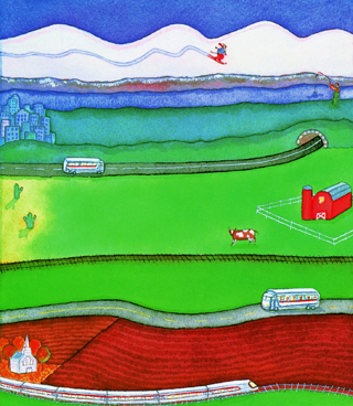 第二天一大早,爷爷带着孙子走出村子。太阳慢慢升起来,没有光,好像没有睡醒。爷爷去年就告诉过孩子,那是因为太阳离得太远。