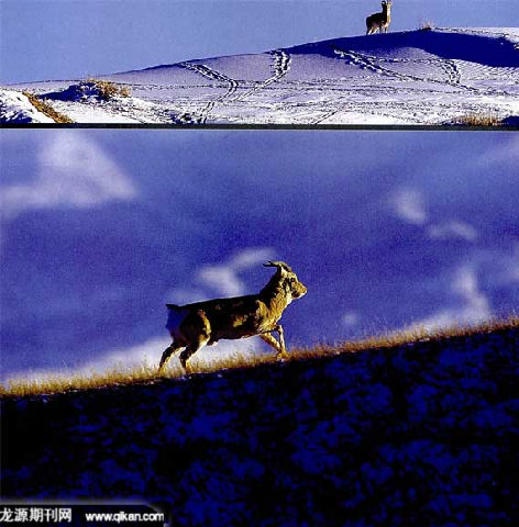 普氏原羚奔跑时像离弦的箭,前后肢分别并在一起,后肢用力后蹬,身体跃入空中,着地时用力后撑,这种跳跃式的奔跑使羚羊的身体在空中划出一道波浪起伏的曲线,分外优美。