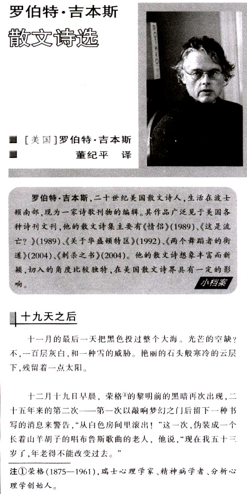 [当代国外诗坛]罗伯特·吉本斯散文诗选