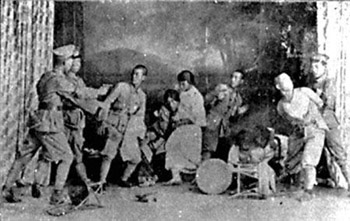 “血花剧社伤人啦!”台下一群孙文会成员趁机怪叫着冲上舞台与演员对打起来。