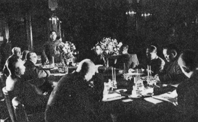 和谈方针确定以后,中共开始加紧准备和谈事宜。3月5日,中共召开七届二中全会,毛泽东指出,我们正在准备和南京政府进行谈判,我们的方针是不拒绝谈判,要求对方完全承认八条,不许讨价还价。其交换条件是不打桂系和其他国民党主和派;一年左右也不去改编他们的军队;南京政府中的一部分人员允许其加入政治协商会议和联合政府。现在,按照北平方式解决问题的可能性是增加了,用这种方法解决问题,对于反革命遗迹的迅速扫除和反革命政治影响的迅速肃清,比较用战争方法解决问题是要差一些的。但是,这种方法是在敌军主力被消灭以后必然地要出现的,是不可避免的;同时也是于我军于人民有利的,即可以避免伤亡和破坏。因此,各野战军领导同志都应注意和学会这样一种斗争方式。全会随即批准了与国民党政府进行和谈的决定。