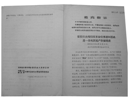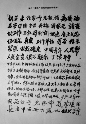 这封信最终还是落到了“群专”的手里,是他的母亲收到后主动交上去的,还是根本就没有接到,而是“群专”人员“查获”的,不得而知。