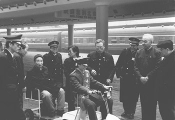 10月4日,时任中共中央总书记的邓小平来北京站,他乘轮椅到车站大厅,然后拄着拐杖到各处视察。