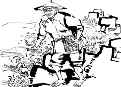 44年前,香婆的丈夫出海打鱼时,不幸遇上飓风,船翻人亡。祸不单行,就在这一年,香婆赶集卖鱼时,两岁的女儿不幸丢失了,四方寻找不见踪影,估计被人偷走了。香婆孤苦无依,又无能力下海捕鱼,日子过得很艰难。有幸的是香婆耳不聋眼不花,身子骨结实,每当海水退潮时,就到海滩上捡鱼虾、贝壳、鹅卵石之类的东西,然后蹬着三轮车驮到码头的集市上去卖,换些钱维持生活。现在苦点累点,香婆倒不在乎,她最担心的是以后,一旦到了不能自食其力的时候,谁来照应她?