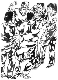刘好和女人的故事,得从贺文兰这个人开讲。那时刘、贺两人都在毛纺厂干活,同在一个班组。贺文兰长得十分秀气,走起路来腰扭得像杨柳枝似的,浑身透着一股水灵劲儿。厂里的后生虽然个个眼馋,但没一个敢追。不料想这么个漂亮人儿,却被“野狼”给缠住了。“野狼”当然不是山里的狼,而是城里有名的混混,派出所的常客。他每天下班时就在厂门口缠着贺文兰,弄得贺文兰又气又急又无可奈何。同事们因害怕“野狼”,都不敢上前,唯有傻愣愣的刘好不知厉害,走上前对“野狼”说:“放开她吧,你这样死皮赖脸的成何体统!”结果是挨了“野狼”一顿毒打,弄得脸上青一块紫一块。可是,这刘好硬是不知好歹,仍是一次又一次地阻止“野狼”纠缠贺文兰。几个月下来,刘好那张脸就像夏天的花园,变得五颜六色了。到后来,刘好干脆送贺文兰回家,他就是这样一位“打不死的程咬金”。凭良心说,他当时对贺文兰真的没什么痴心妄想,也从未打过贺文兰的什么主意,只是看见别人受欺负他就要管,哪怕自己被挨打也在所不惜。