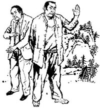 但曲善仁对这点儿山坡薄地也不放过。他不知从哪儿听说,有人多次见过驼峰岭发生过龙缠兔的现象。所谓龙缠兔,就是蛇吃野兔,这并没有啥稀奇的。但老辈人传说,凡出现龙缠兔的地方,一定是块风水宝地,这块地若作为坟地,儿子可以辈辈做高官,代代发大财。对这样一块宝地,曲善仁自然是垂涎三尺。他找到陈志刚的爷爷陈幺蛋,要用低廉的价格把驼峰岭买下来。陈幺蛋不答应,仗着族里人多,和曲善仁发生了冲突,使曲善仁受了点小伤。曲善仁恼羞成怒,给驻扎在县城国民党军队中当连长的儿子曲宏超捎了个口信。曲宏超一听暴跳如雷:“反了,穷鬼们反了!”立即带了一个排的士兵扑向骆驼坪村,将陈幺蛋抓去严刑拷打,非要陈家人将驼峰岭拱手让出不可。陈幺蛋是条硬汉子,宁死不从,结果被曲宏超折磨得半死,回到家没几天就死了。全国解放前夕,曲善仁深知自己罪孽深重,携带金银细软和老婆一起躲入儿子的军营,在国民党军队溃败时,与儿子曲宏超一起逃到了台湾。