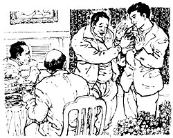 雅间里,钱厂长如坐针毡,王强却谈笑风生。他说自己从老家借了些钱,费尽周折开了这家酒店,厨师都是花高价钱从大酒店里挖来的,个个身怀绝技,所以开业以来生意一直不错。来者都是客嘛,以前的事也不能全怪钱老板,自己也有错,过去的事就让它过去算了。王强说着招手叫来服务员,点了满满一桌子主菜和副菜,自己又跑到服务台拿来两瓶剑南春。钱厂长一看王强不仅不记前仇,还主动请自己吃饭,一颗悬着的心才放了下来,气氛很快热烈起来。