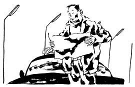 当杨军从大厦里出来时,看见一个交警站在自己的小车旁边。他提心吊胆地走过去,交警说:“你乱停车,要罚款。”杨军说:“我是进去找人。”交警说:“不管你找什么。罚款100元。”说着就开罚单。杨军说:“我今天刚刚出车,一分钱还没有挣到。”交警说:“再狡辩连驾驶证一块扣了。”杨军哪里还敢争辩?乖乖地交了100块钱。