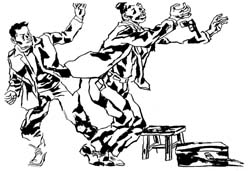 “住口!”这个人吼道。只见他掏出手枪,从擦鞋摊上一跃而起。但他却没能如愿,脚下像挨了一绊,脸朝下栽倒,摔得不省人事。